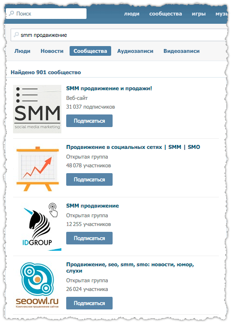 Что такое раскрутка сообщества, наверное, понятно каждому. Какими бы ни были ваши интересы, от кинематографа до дорогих машин, стоит всего лишь вбить нужные слова в поиск по группам, ну и собственно выбрать ту, которая появится в самом верху списка.