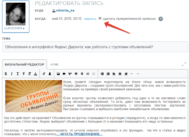 Как правильно добавлять сообщения и посты на стену вконтакте Как закрепить пост