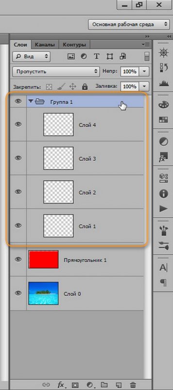 Создание слоев и групп и управление ими в Adobe Photoshop