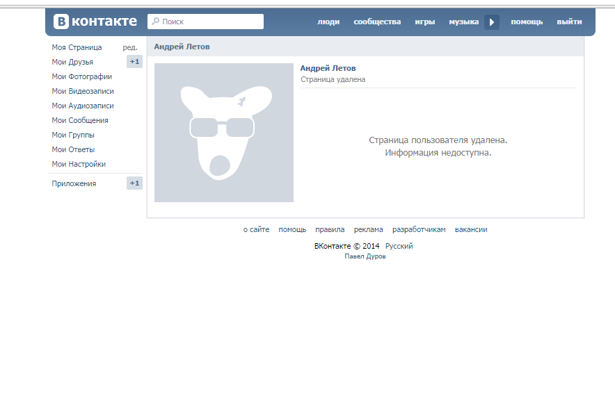 Покажу на примере первой попавшейся мне удаленной страницы ВК.