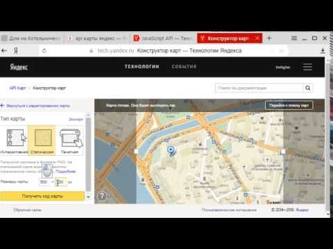 Чтобы скачать код для вставки на сайт, нужно авторизоваться в Яндекс и создать карту в разделе Конструктор. Далее вводится нужный адрес и сразу настраивается внешний вид карты — тип и цвет метки, описание и подпись. После изменения этих параметров все настройки сохраняются и можно получить HTML-код для вставки на сайт.