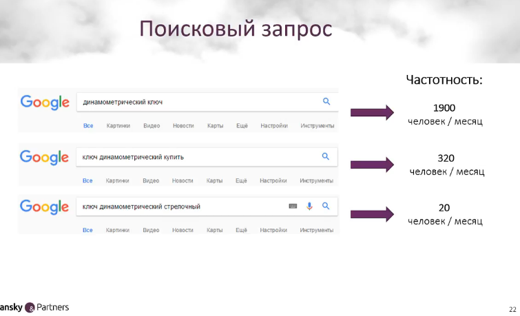 Дмитрий Варской, 20.08.2018Поисковый запрос — последовательность слов, которые набирает пользователь в поисковой системе.