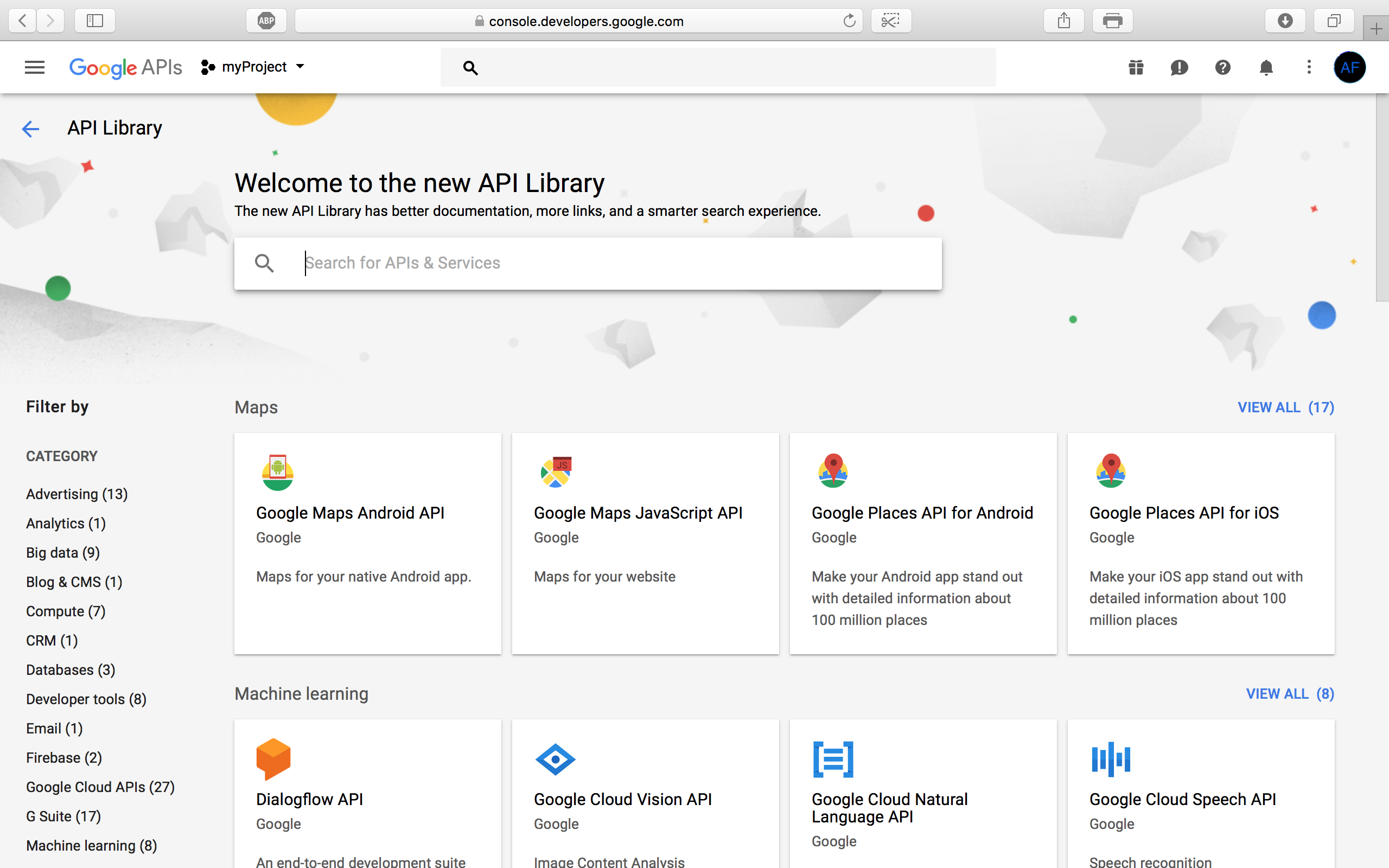 Готово, после подключения в блоке «Включенные API» (Enabled APIs) должны находится все подключенные API: