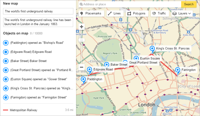 Некоторые из функций, которые сразу же привлекают внимание, включая в себя возможность рисовать и добавлять текст, изображения, ссылки. Вы можете выделить на карте какую-то территорию и добавлять мультимедийные метки.