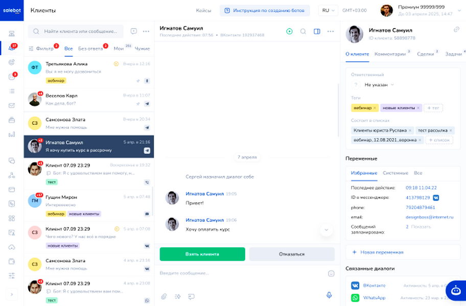 Про все вышеперечисленные функции в видео ниже подробно рассказывает Сергей Ошуков — куратора разработки данного конструктора чат ботов