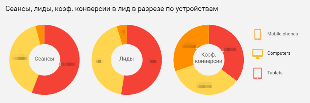 Другая задача — отследить увеличение расходов. В сезон необходимо наращивать рекламные бюджеты и количество конверсий, соответственно, лидов. Мы с клиентом отслеживаем, насколько возрастают эти показатели относительно друг друга.