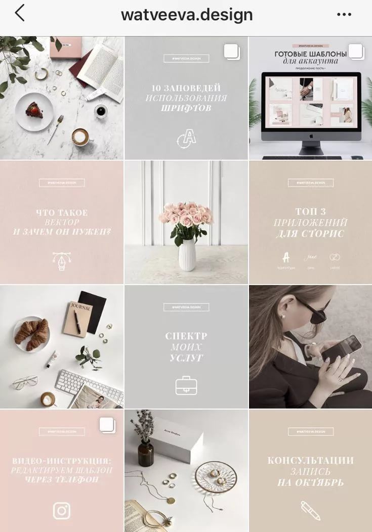 - Лента в ее инстаграме сплоченная (привет, белый фон и идеальные плоские макеты). Я могу заметить ее работу за много миль