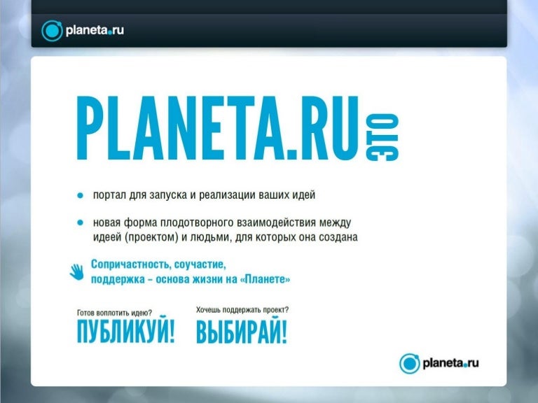 Существуют также другие специализированные платформы, посвященные музыкальным и литературным проектам – PledgeMusic, Unbound и Distrify. А для желающих создать свой стартап могут быть полезными сайты Fundable, Crowdcube и Seedrs. Все, что требуется от автора идеи, – подробно описать, почему именно она достойна инвестирования и чем новшество будет полезно обществу, как сможет изменить мир, или как жертвователи смогут получить обратно свои деньги.
