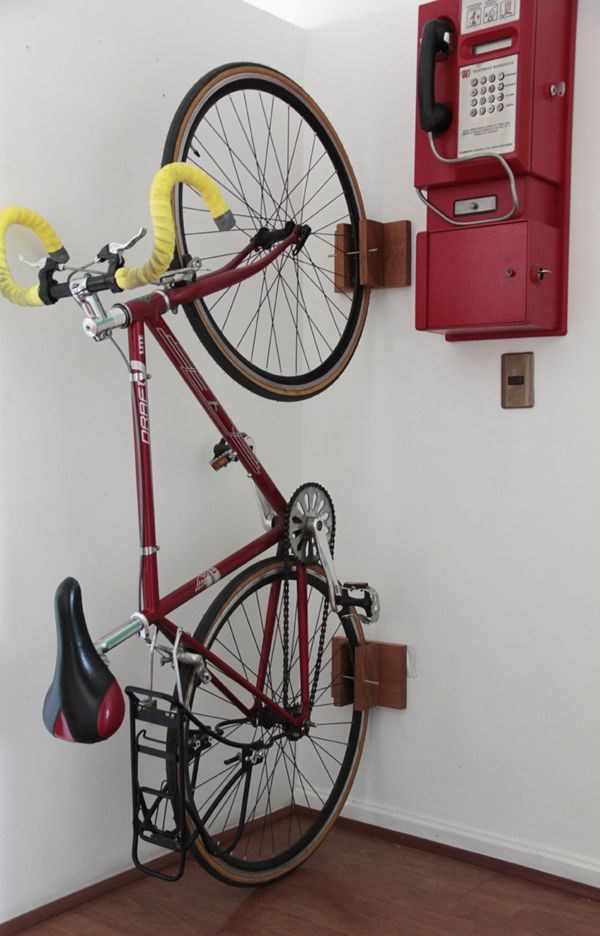 Для зимнего хранения оборудуйте в комнате настенный подвес для байка. С его помощью вы сэкономите место и создадите оригинальный дизайнерский акцент.