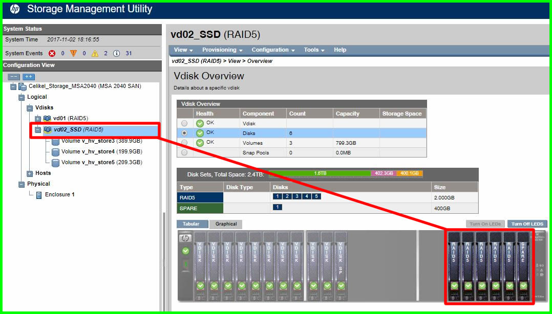 Как я писал выше — СХД состоит из устройств хранения, среды передачи и подключенных серверов. Рассмотрим по порядку: