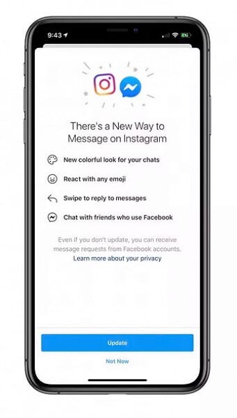 Согласно Instagram: «В нашем исследовании четыре из пяти человек, использующих приложения для обмена сообщениями в США, говорят, что для них важно проводить больше времени, общаясь с друзьями и семьей в этих приложениях, но каждый третий человек иногда считает это трудно вспомнить, где найти определенную тему разговора. С этим обновлением будет еще проще оставаться на связи, не задумываясь о том, какое приложение использовать для связи с друзьями и семьей».