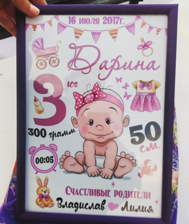 Полученное изображение необязательно распечатывать – им можно поделиться с друзьями в любой соцсети. Также вы можете приятно удивить своих знакомых, поздравив их с рождением ребенка и прислав именную открытку.