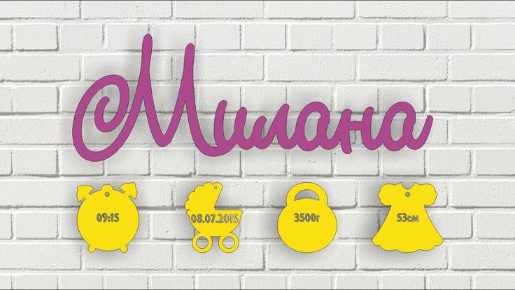 Имя можно оформить красивым рукописным шрифтом или оставить пустое место на постере и вписать потом от руки, если, например, вы готовите композицию к рождению и данные еще не известны. Помимо стандартных данных о ребенке добавьте знак зодиака, дату крещения, имена родителей, цвет глаз. Подпись для лучшей читаемости удобнее всего разместить на небольшой картинке или на подложке в виде геометрической фигуры. Например, очень распространенный ход – расположить параметр веса на картинке с гирей, время — на часах, дату — на календаре.