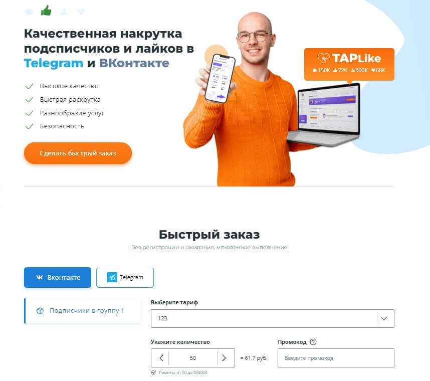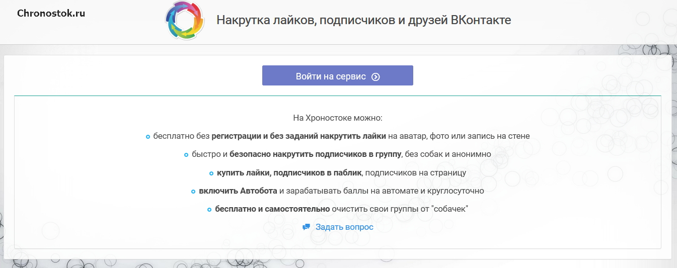 - Следует войти на сервис (https://turboliker.ru/), используя аккаунт ВК.