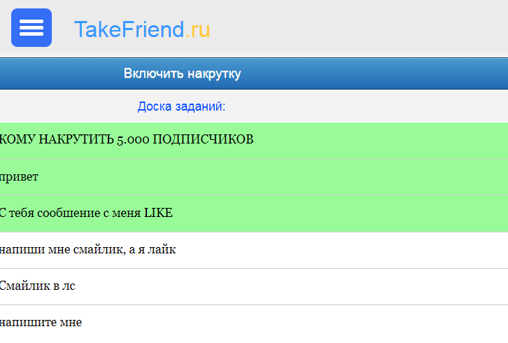 Довольно простой сервис, что наталкивает на мысль: «Почему он единственный в своем роде, способный накрутить сообщения?». Да с помощью предыдущего сервиса также можно накрутить. Но там мы использовали обходные пути, создавая «произвольное» задание, так как прямой функции «Накрутить сообщения» там не было. А в TakeFriend она есть.