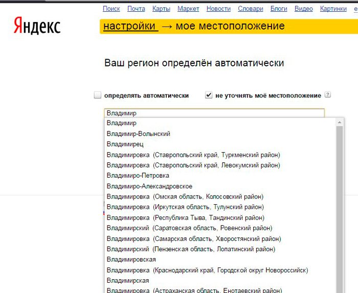 - Снимите галочку с автоматического определения и укажите правильный город.
