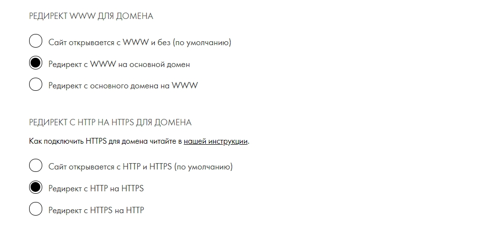 Теперь сервер доступен по двум доменам: с префиксом www и без него. Можно начинать настройку редиректа.