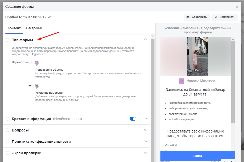 Генерация лидов. Продвигается форма заявки, которую пользователь заполняет прямо в Instagram (про это у нас есть отдельная инструкция).