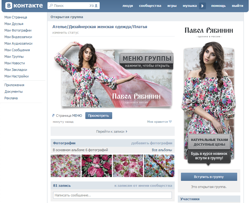 Однако не стоит забывать про интересное оформление группы: её дизайн и актуальность выложенной информации.