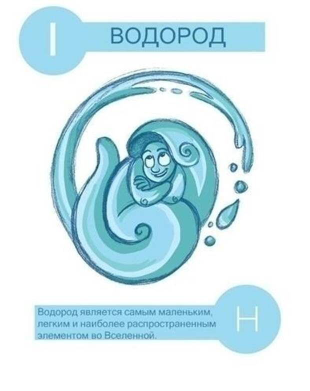 — занимает первое место в периодической системе Менделеева, невесомый газ, образующий воду при соединении с кислородом.