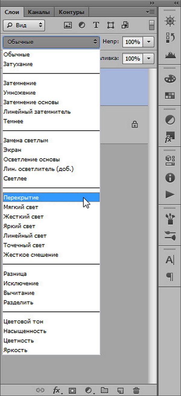 Мы будем использовать опцию Overlay . Если вам нужен другой вид, вы можете изменить непрозрачность текстурированного слоя, переместив ползунок. Он расположен в правой части меню режима наложения.