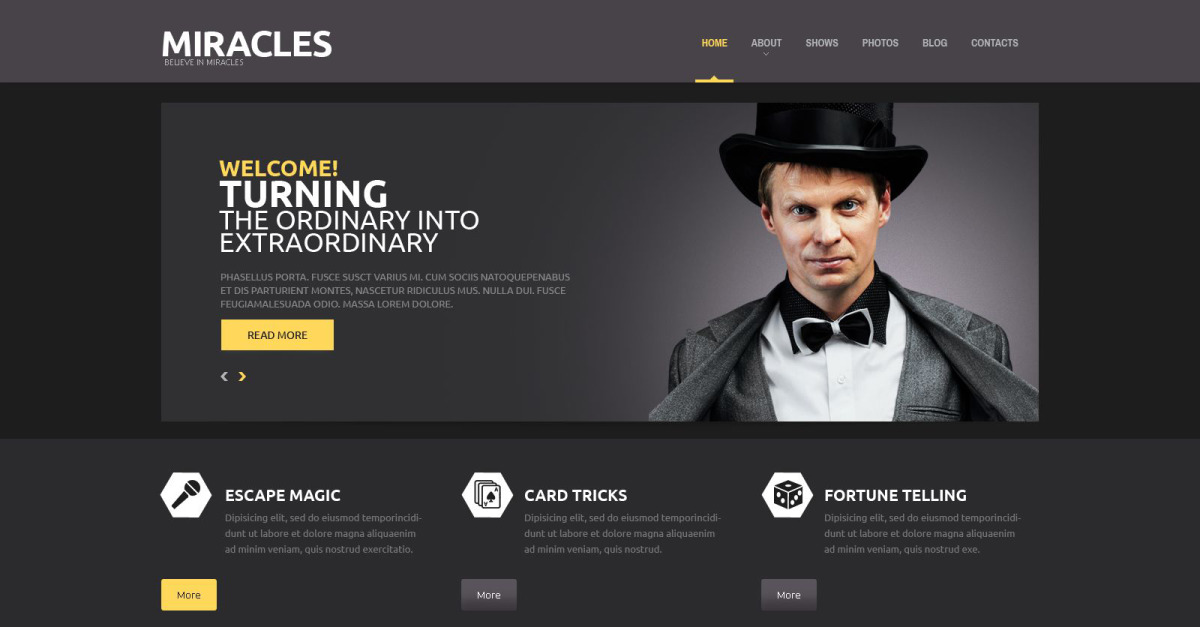«Простые WordPress темы для быстрого старта. Мы разрабатываем простые темы для WordPress, доступные всем, кто хочет создать современный сайт. Смотреть темы»Главную страницу этой студии дизайна, которая создает темы для WordPress, отличают следующие черты: