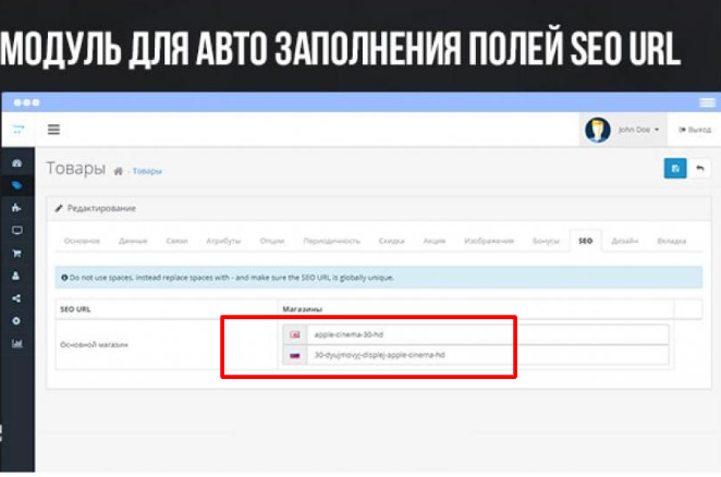 а) Формирование ЧПУ. Это можно реализовать через СЕО-модуль для Опенкарт — SEO Pack PRO.