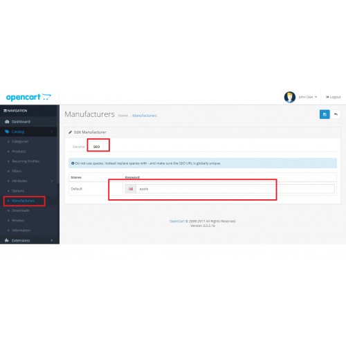 Добавленные ключевые слова SEO будут отображаться в URL-адресе страницы, поэтому они должны быть уникальными для каждого продукта, категории продуктов и т.