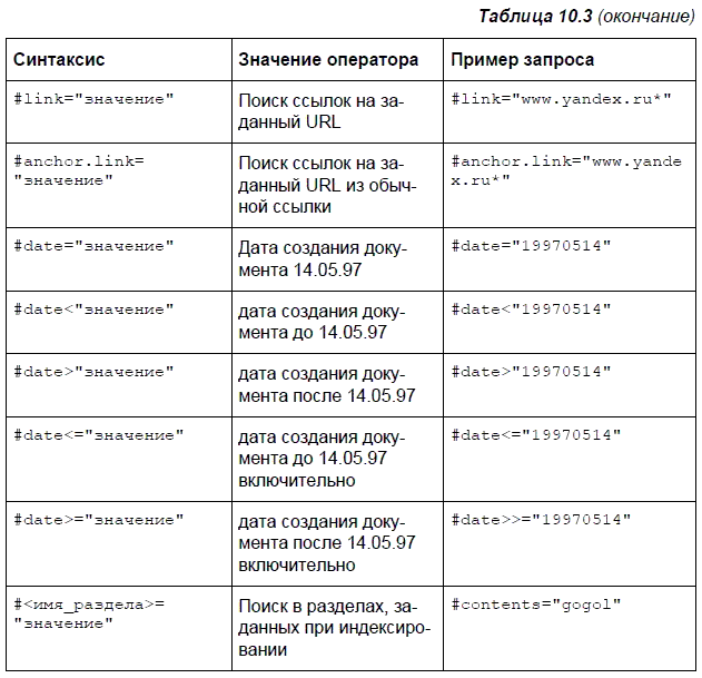 Но перед тем, как перейти к описанию всех операторов и знаков поиска с примерами, давайте взглянем на них в сводной таблице: