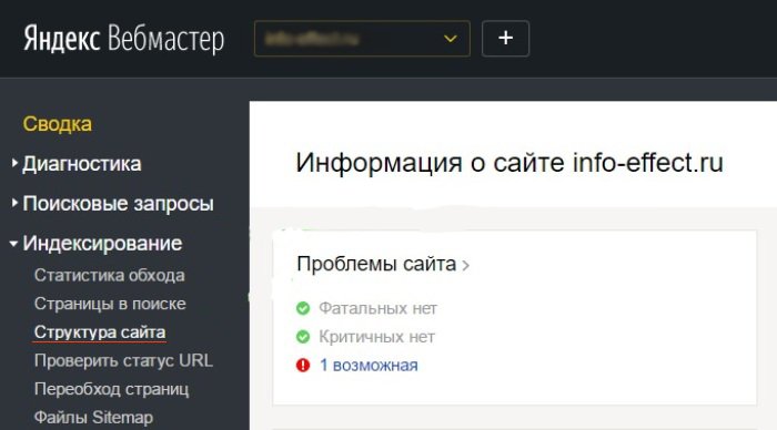 «Структура сайта» — отражает структуру так, как ее видит поисковый робот. Эта информация поможет убедиться в том, что робот загружает те страницы сайта, которые интересны вашим пользователям.