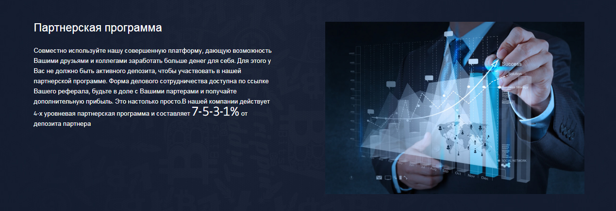 - высокие шансы заработать более 1000$ в месяц при активном привлечении трейдеров;
