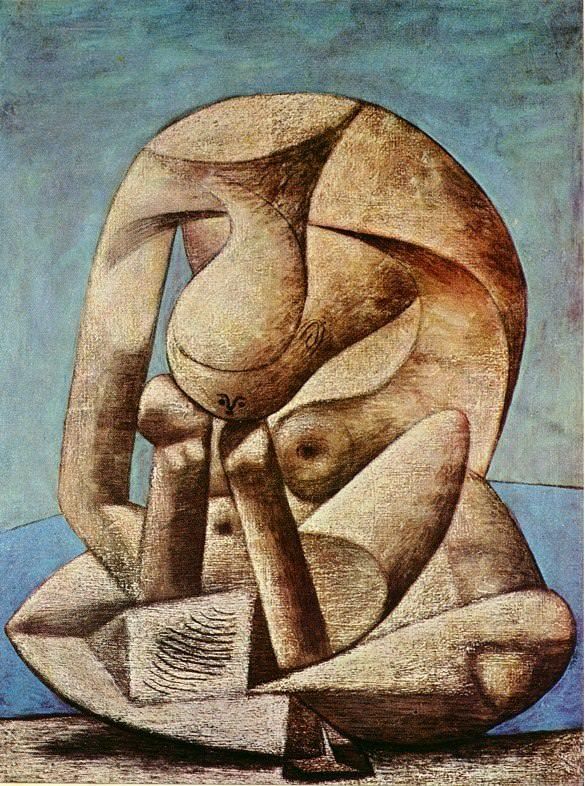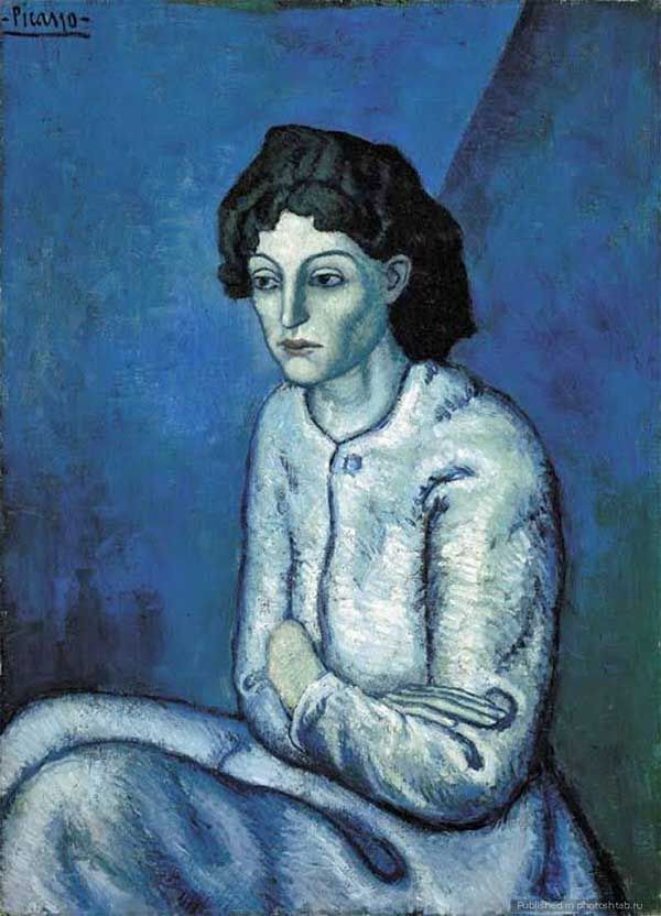 Ранние работы Пикассо датируются 1901 и 1904 годами, сейчас их называют «голубым периодом». Они передают мрачные темы нищеты и отчаяния, окрашены в монохромные голубые цвета с изображением удлиненных, перекрученных тел с искаженными чертами.