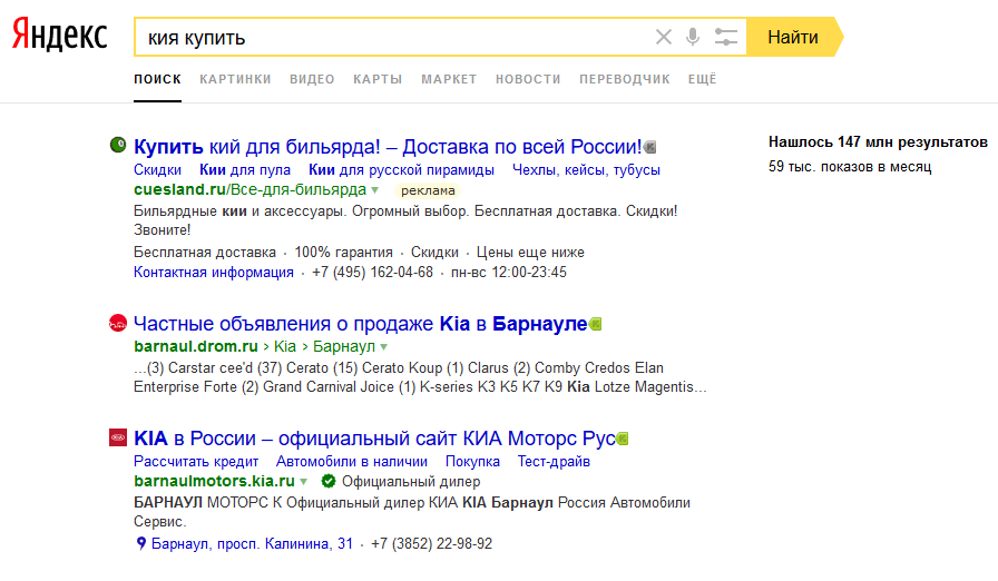 Например для Яндекса — Сид (модель марки KIA) и Сиде (город в Турции) — это одно и тоже слово в различных словоформах и объявление написанное для ключевого слова