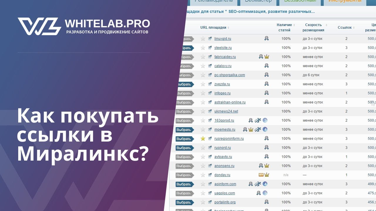 - Miralinks. Отличное решение для региональных и коммерческих проектов. Есть возможность размещения в статье сразу нескольких линков. Текст для публикации надо готовить самим.