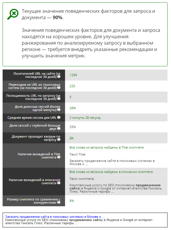 - кликабельность ресурса, высокий CTR и качественный сниппет – показатели хороших пользовательских факторов.