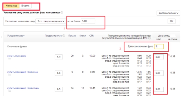 — цена клика на первой позиции всегда дороже чем на 2 или 3.