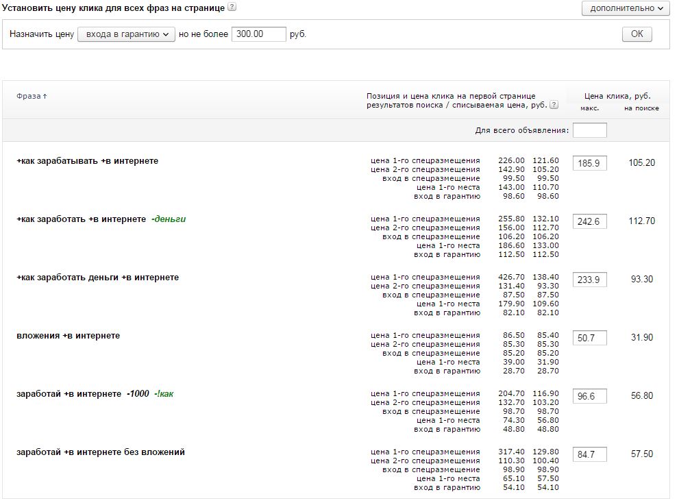 Как самостоятельно узнать оценочные ставки для показа на первой странице, вверху страницы и на первой позиции