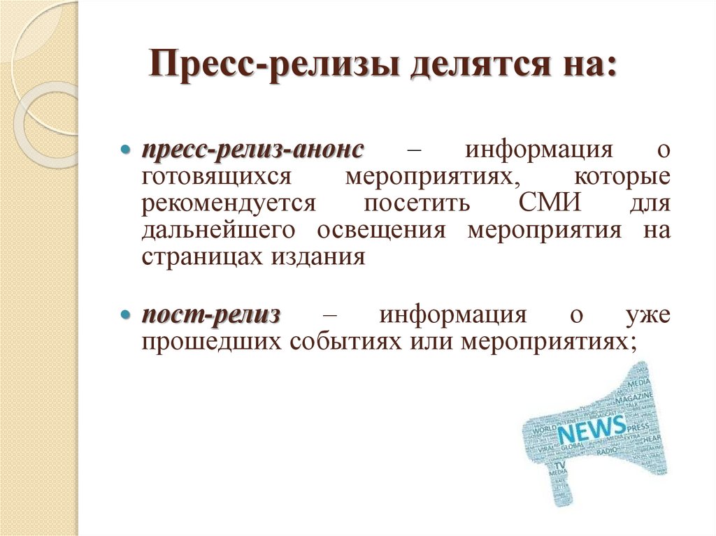 - Не гарантируется, что средства массовой информации будут публиковать пресс-релизы.