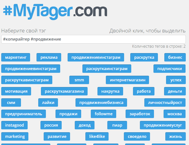 Специальные символы не используются. К одному фото можно добавлять до 30 отметок. Если в «Инстаграме» использовать актуальные теги, видимость сообщений увеличивается, что позволяет быстро нарастить базу подписчиков. Наиболее востребованные метки можно определить с помощью сервиса Websta.me. По мнениям специалистов, большой популярностью в этой соцсети пользуются географические теги и отметки, обозначающие конкретные места пребывания (например, клуб, ресторан и т.д.).