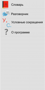 — Условные обозначения — здесь указаны сокращенные обозначения слов и фраз с их полной расшифровкой, которые используются в разделах Словарь и Разговорник.