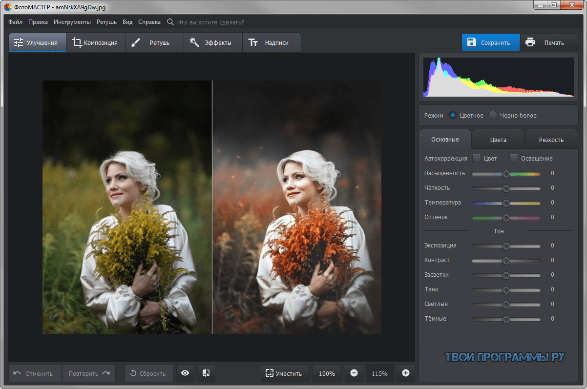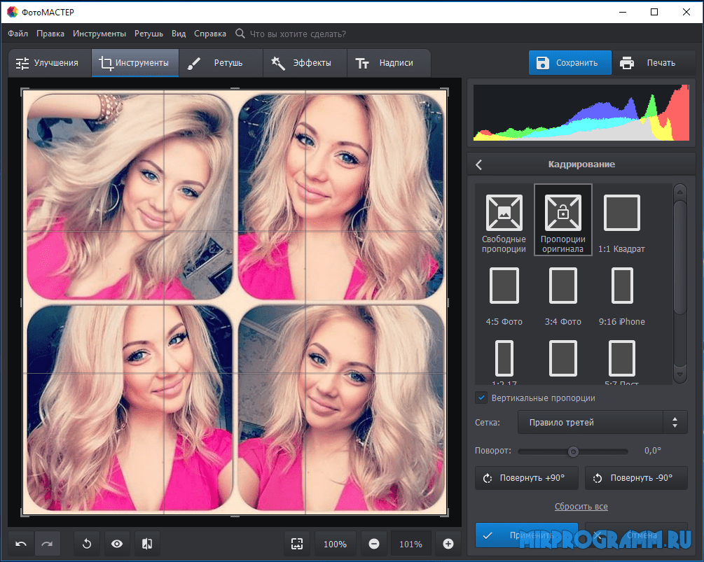 Этот фоторедактор для смартфонов также доступен в версиях под iOS и Android. Набор функций здесь довольно небольшой. В программе вы сможете: