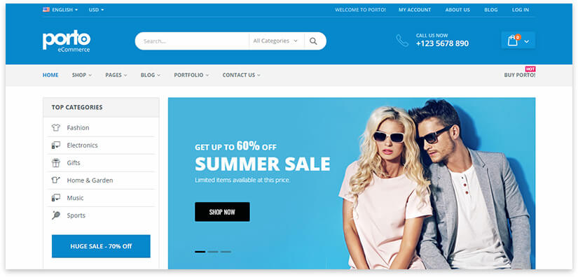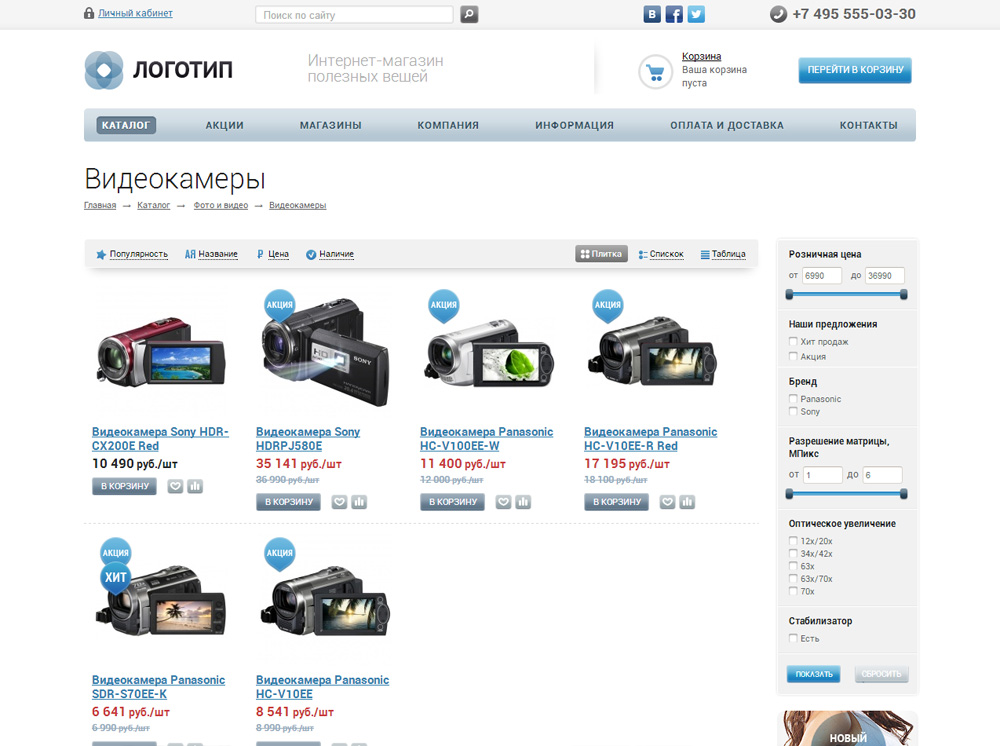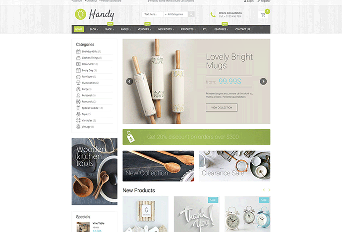 - Минималистичный модульный шаблон для WooCommerce, сочетание простоты и качества