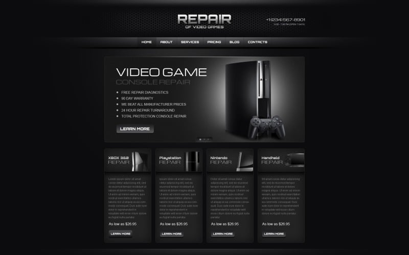 Сюда входят услуги, предлагаемые компанией, ее история и местонахождение, а также контактные данные. Все содержится на одной странице и загружается в нужное время.