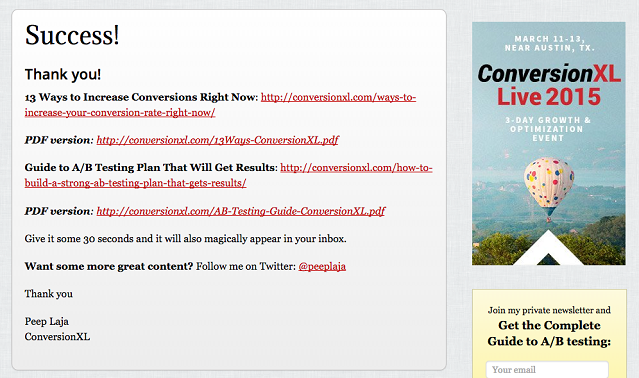 С помощью страницы благодарности такого типа вы не просто перенаправляете новых потенциальных клиентов на свое обучение — вы все равно должны признать пользователям, что их действия были успешными (и что вы высоко оценили шаг, который они предприняли).