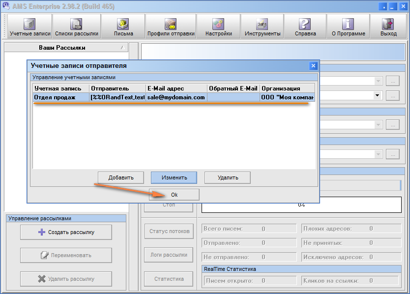 - Ведение логов рассылки и удаление заблокированных аккаунтов