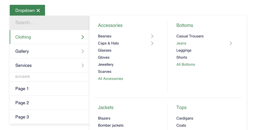 - Gute Navigation: Anstatt wichtige Links überall auf deiner Website zu platzieren, sind sie in einem Dropdownmenü übersichtlich an einem Ort angeordnet. Damit wird die Benutzerfreundlichkeit verbessert, da deine Benutzer nicht mehr nach dem gewünschten Linksuchen müssen. Alle Links befinden sich ganz einfach in deinem Dropdownmenü.
