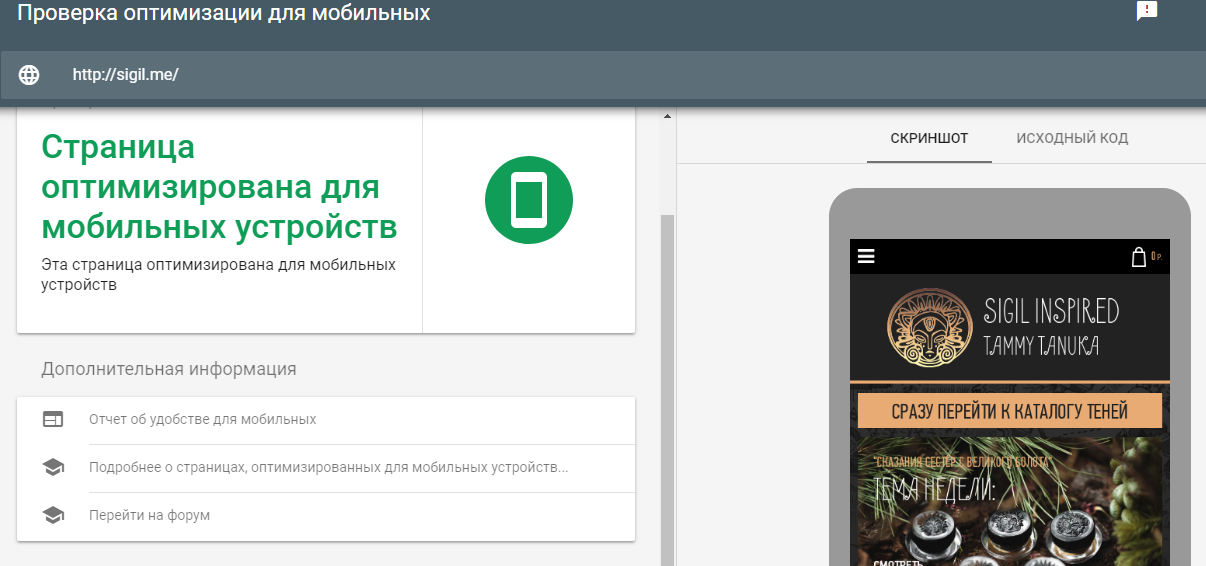 Сервис анализирует как саму страницу, так и перенаправления на ней по гиперссылкам. Среднее время анализа занимает не более 2-х минут. По итогу вы увидите, как ваш сайт отображается в мобильной версии и какие ошибки предстоит решить для качественной оптимизации ресурса.