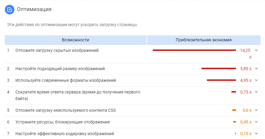 Сигналы, указывающие на необходимость улучшения страницы, включают:
