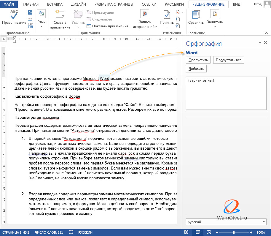 Это всего лишь пример многих настроек правописания, которые вы можете изменить. |
