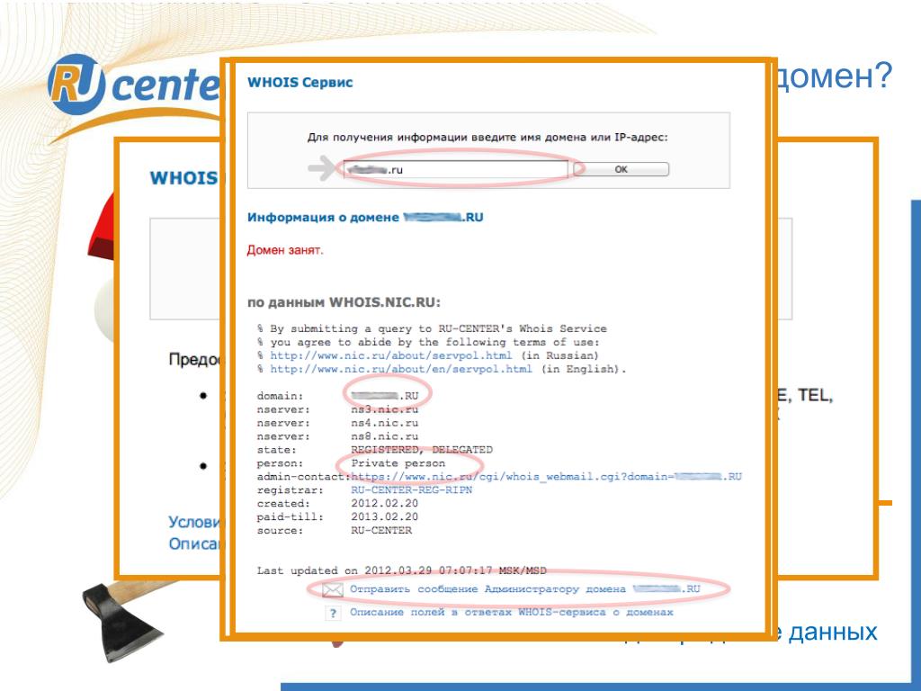 Служба делает запрос к базам данных сетевых сервисов регистраторов и позволяет получить информацию: